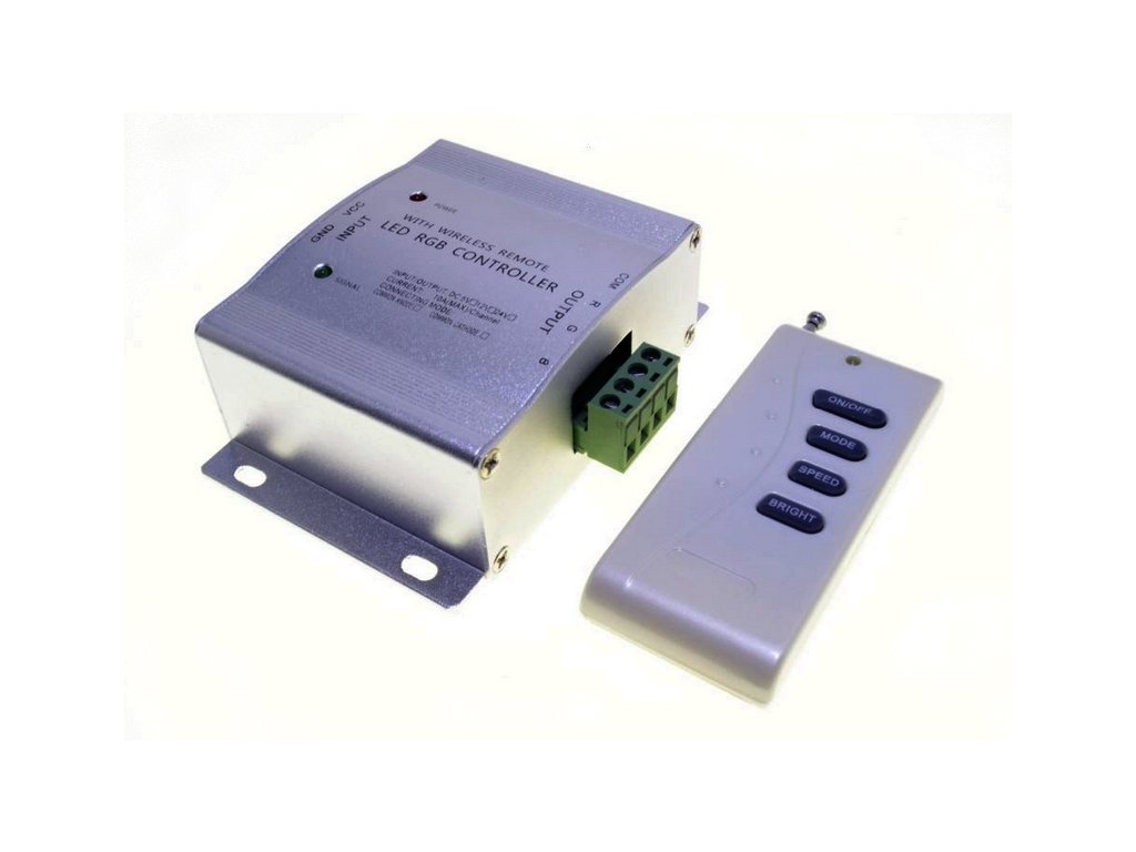 RF ovládanie nepotrebuje priamu viditeľnosť medzi krabičkou ovládača a Diaľkovým Ovládaním. Ovládač je preto možné umiestniť do nábytku alebo za sadrokartónovú stenu a podobne. Tento ovládač je uspôsobený na veľké prúdové zaťaženia. Zvládne teda aj náročné inštalácie s veľkými dĺžkami LED pásikov, napríklad aj pri podsvietení veľkých stropov