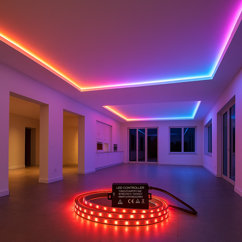 | ? Produkt a jeho súčasti: | Koncová krytka, 230V RGB LED pás, 230V RGB ovládač |