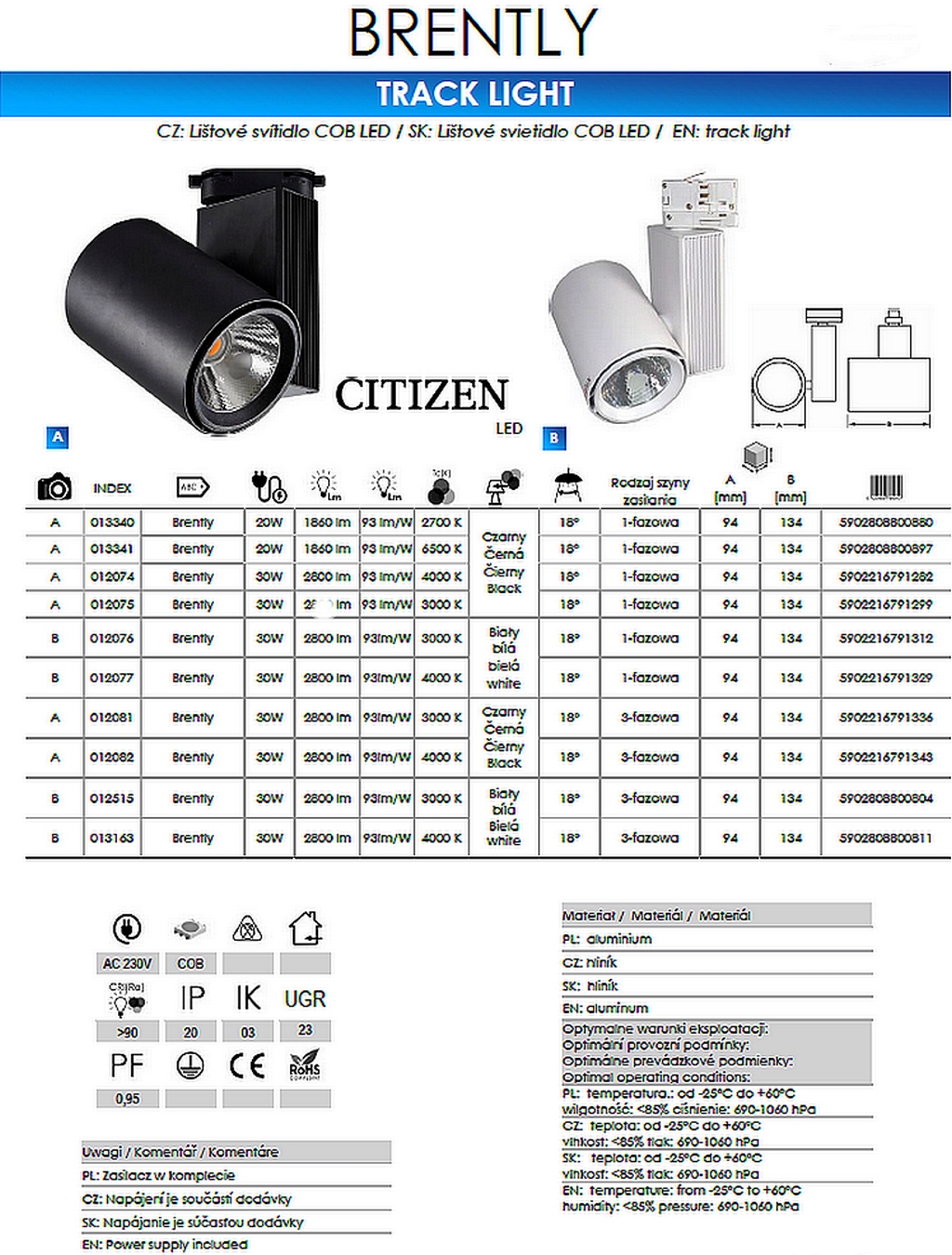 | Kompatibilita: | PANT rada svietidiel, Global Track 1F systém |