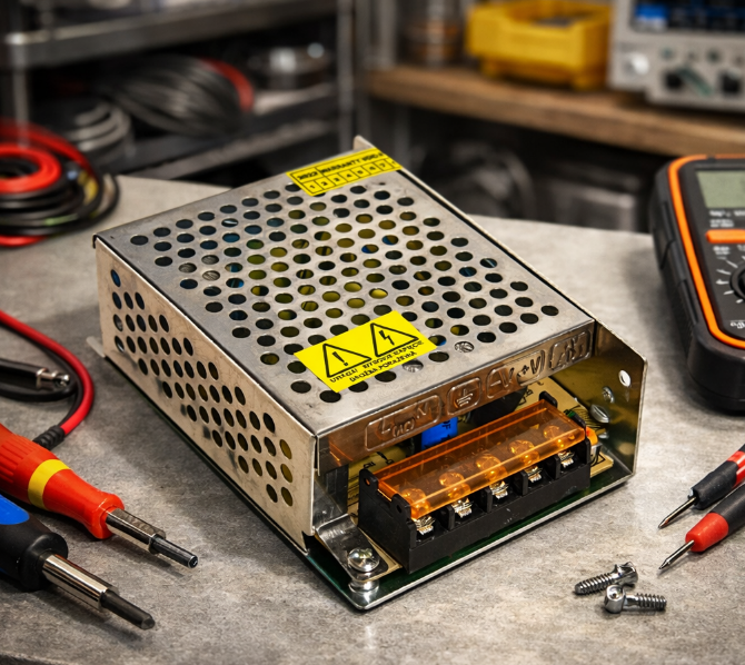 Montážny zdroj pre 12V LED pásiky a iné osvetlenie, impulzný napájací zdroj vhodný aj pre umiestnenie na DIN lištu