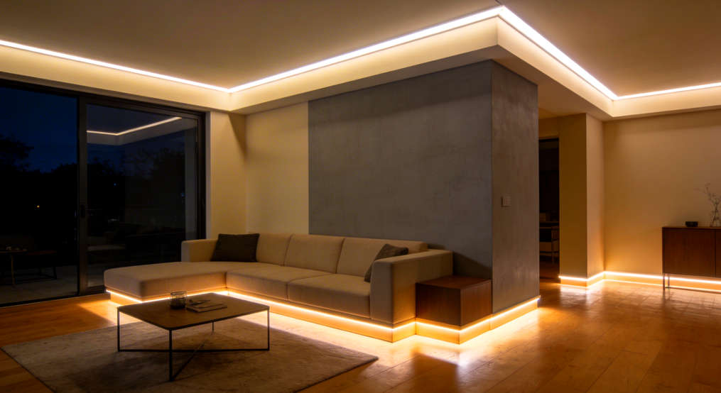 Línové osvetlenie podhľadov a stropných hrán.