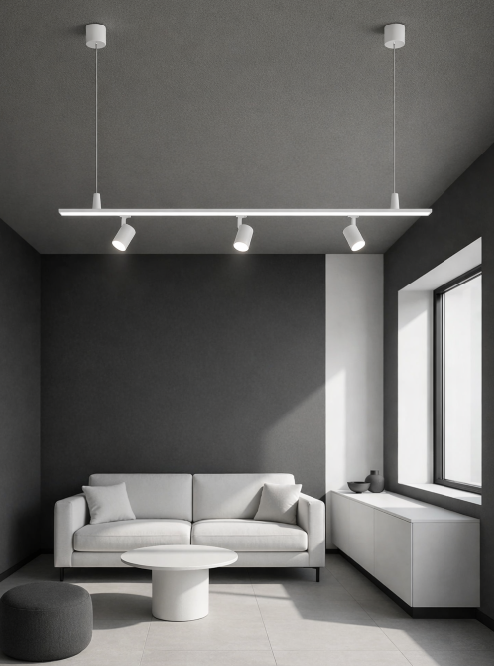 Výhodou je, že LED koľajnica funguje nielen ako zdroj napájania, ale aj ako dizajnový prvok – vytvára čisté línie a dodáva interiéru profesionálny vzhľad.