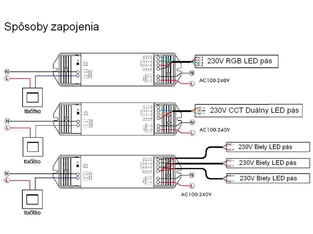 | ? Použitie pre LED pásiky typu: | Biele, jednofarebné |
