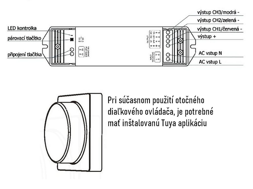 Ak si objednáte k ovládaču aj klasické Otočné diaľkové ovládanie, je potrebné mať inštalovanú Tuya aplikáciu aby fungovalo otočné diaľkové ovládanie.