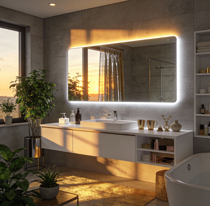 Prémiové riešenia, kde sa vyžaduje čistý dizajn bez viditeľných vypínačov, s komfortným stmievaním priamo na zrkadle