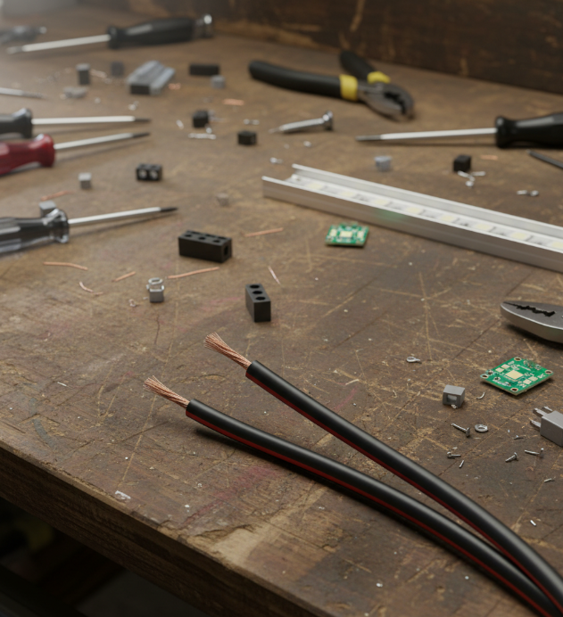 Rozvody od centrálneho zdroja k prepínačom, stmievačom alebo RF/Wi‑Fi prijímačom v nízkonapäťových LED systémoch.