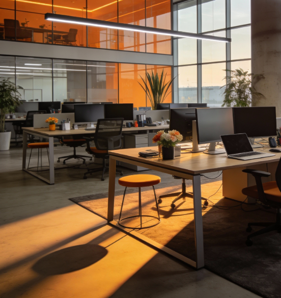 High‑tech kancelárie, showroomy a moderné predajne, v ktorých ostré línie COB 6500K podčiarkujú minimalistický alebo industriálny charakter.