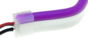 K 12V Neonu je potrebné pripájkovať napájací konektor pre 12V zdroj. Alebo podľa situácie môžeme pripájkovať k Neonu dvojlinku s požadovanou dĺžkou. Pre názornosť sme na ukážke použili čierno červenú dvojlinku. V praxi sa však môže použiť transparentná alebo biela dvojlinka, ktorá nie je tak viditeľná: