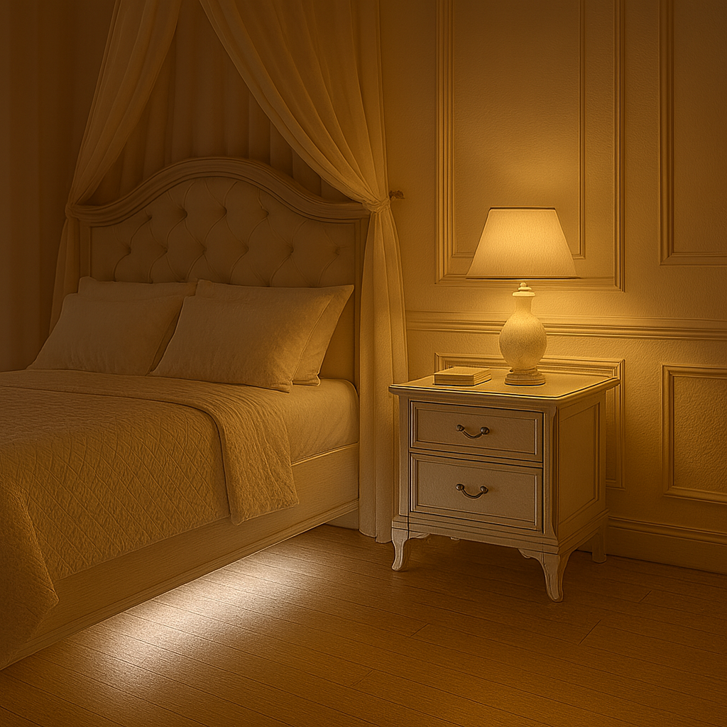 Pod posteľou, nočné orientačné osvetlenie bez potreby stlačiť vypínač