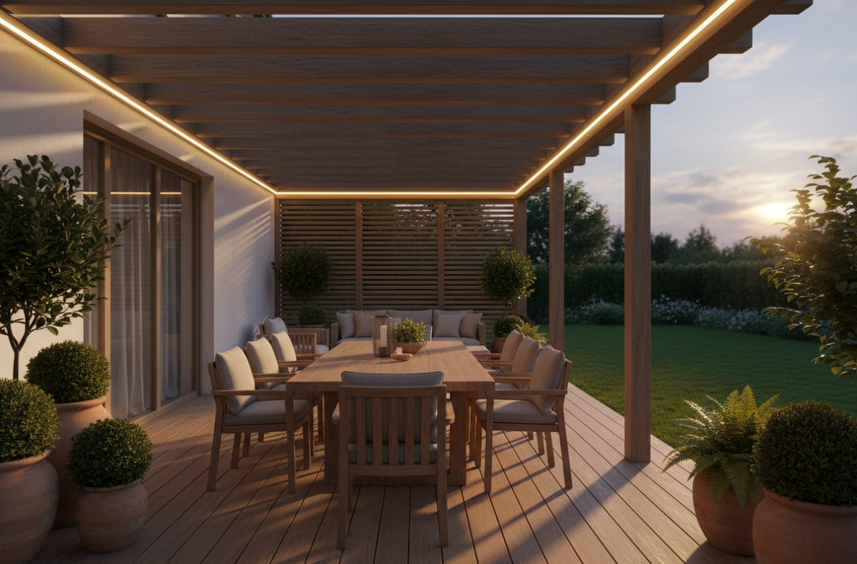 Dekoratívne a naládove osvetlenie altánku, vonkajšieho sedenia či terasy: