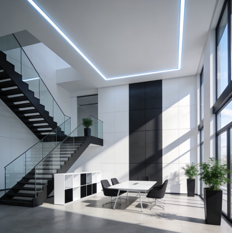 Studená biela 6000 K poskytuje maximálnu jasnosť a kontrast, zvýrazní textúry, hrany a detaily výrobkov – skvelé pre pracovné a predajné plochy. COB technológia a hustota 784 LED/m zabezpečujú efekt jednej súvislej svetelnej línie bez bodiek aj v nízkych profiloch, čo pôsobí profesionálne a čisto. Vysoký výkon 20 W/m v kombinácii s 24 V napájaním umožňuje dlhé úseky s veľmi silným svetelným tokom, vhodné aj ako hlavné osvetlenie menších priestorov alebo silné akcentové svetlo.