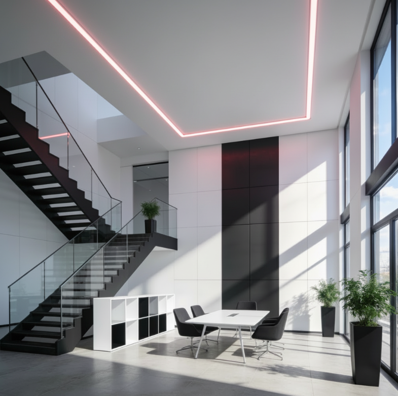 Studená biela je ideálna pre kuchynské linky, pracovné dosky, dielne, garáže a technické miestnosti, kde potrebuješ čo najjasnejšie a najkontrastnejšie svetlo. Výborne sa hodí aj na osvetlenie vitrín, regálov, výstavných plôch, showroomov a predajných regálov, kde zvýrazní produkty a dodá im „krištáľovo čistý“ vzhľad. V kanceláriách a štúdiách poskytne studená biela COB línia veľmi dobré podmienky na prácu pri počítači, ručné práce či fotenie produktov, pričom RGB kanál umožní prepnúť scénu do efektného režimu pri prezentáciách alebo eventoch.