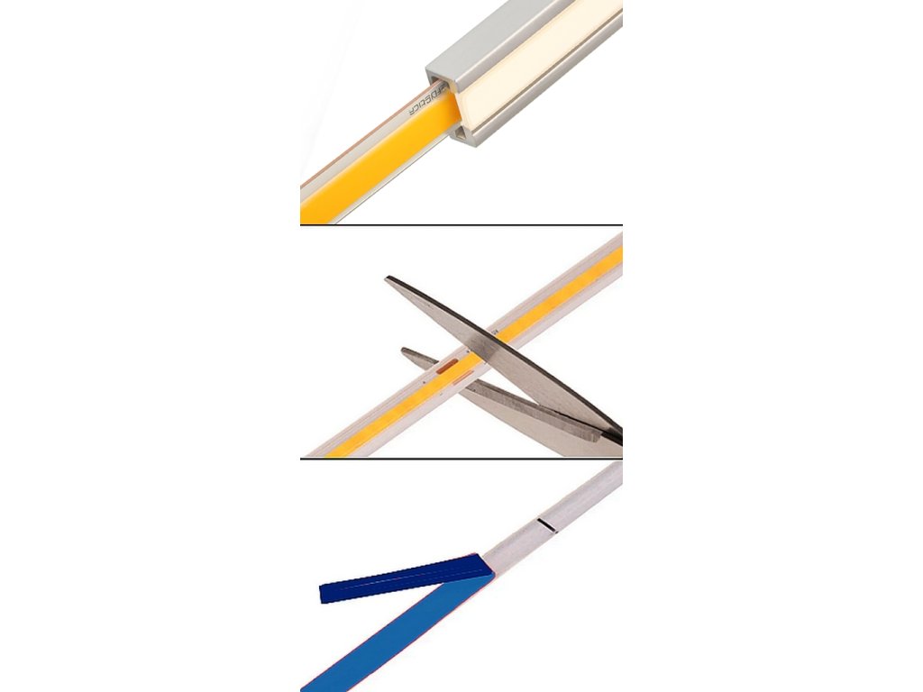 Úprava dĺžky LED pásu na požadovaný rozmer, jednoduchým odstrihnutím.