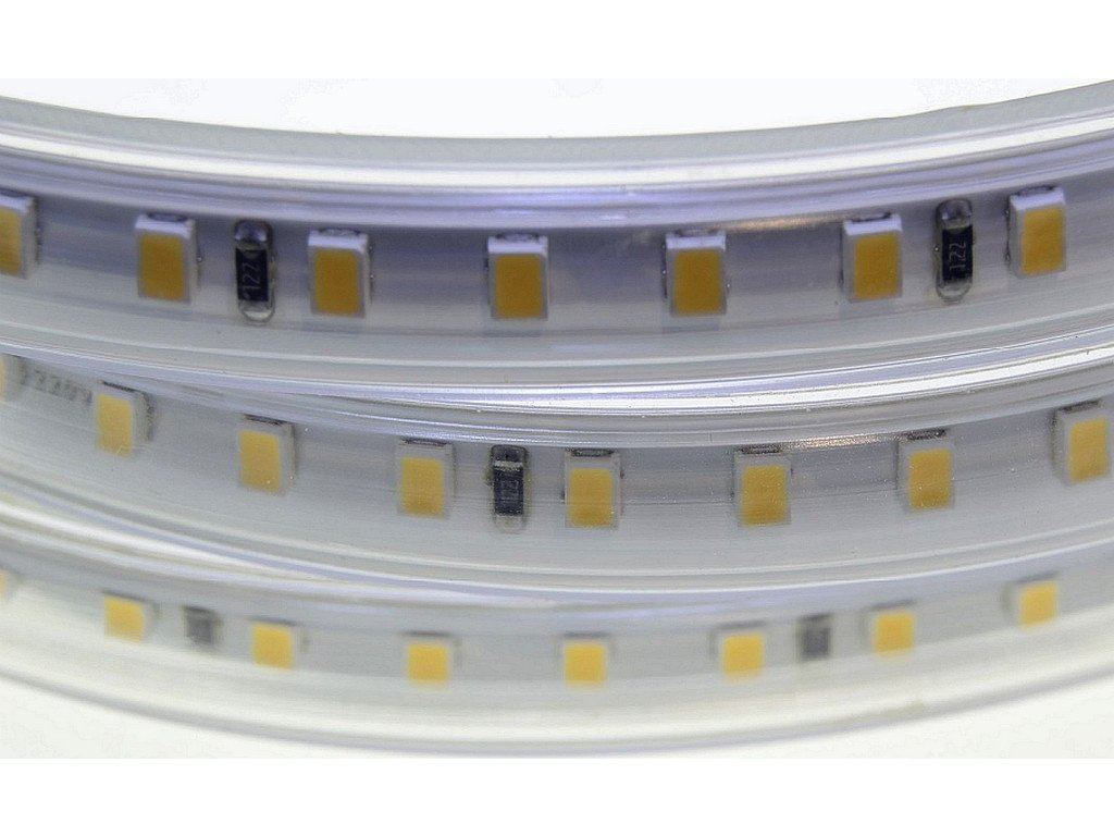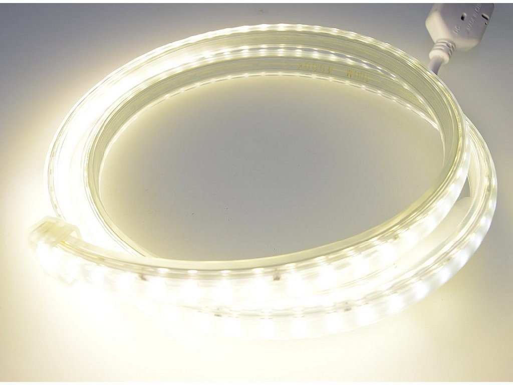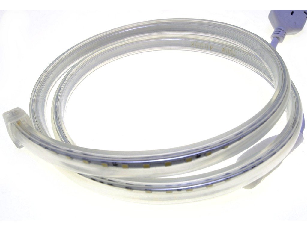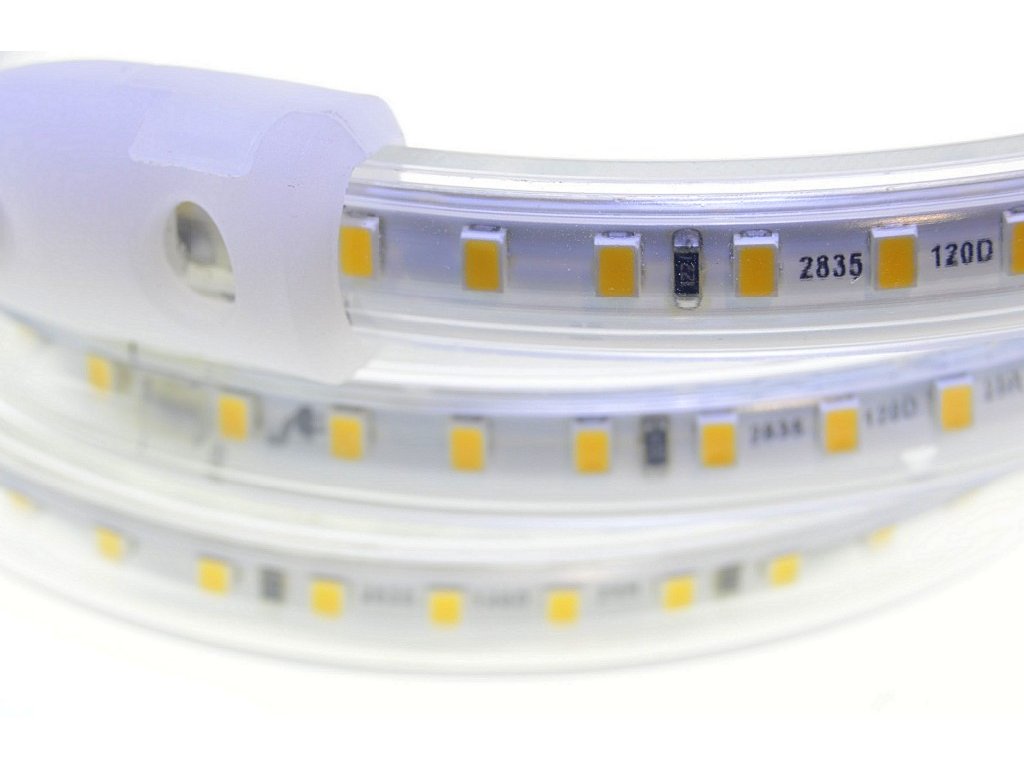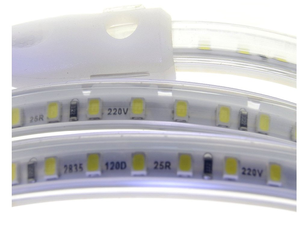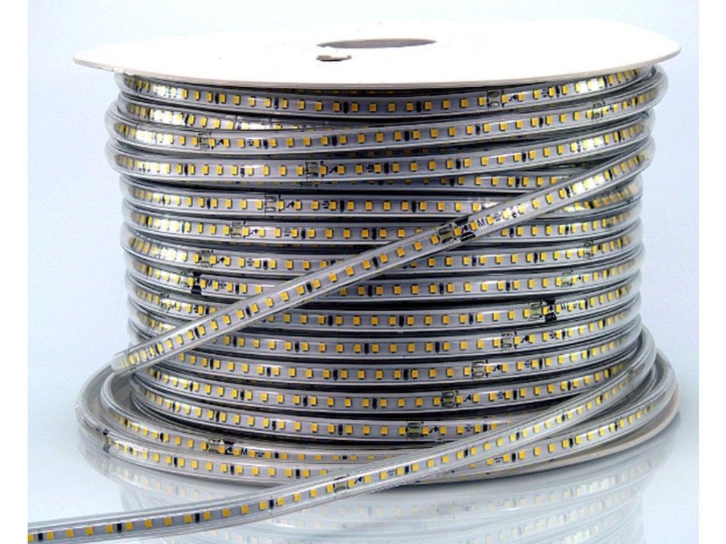 Vode odolný 230V flexibilný LED pás s univerzálnou a najčastejšie používanou Dennou farbou svetla 4000K, s mimoriadnou svietivosťou 2400lm/m - čo zodpovedá jasu cca 167W klasickej žiarovky ! Pritom pás má nízku 14W spotrebu, LED pás nepotrebuje napájací zdroj !