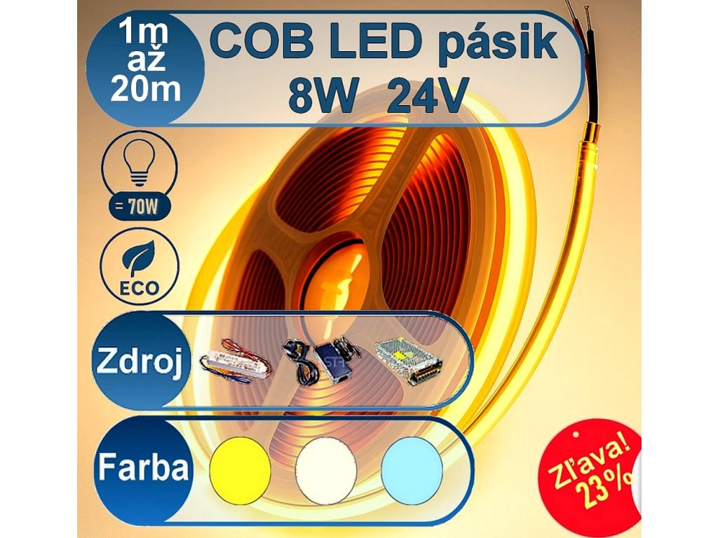 Ledstar Konfigurátor sady s COB Bielym 24V/8W LED pásikom 5až20m, biela na výber, zdroj na výber