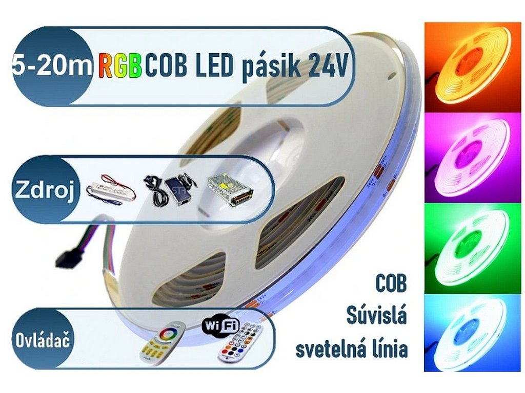 LedStar COB RGB 24V LED pásik 5–20 m – farebná LED sada so zdrojom a ovládačom na výber, konfigurátor