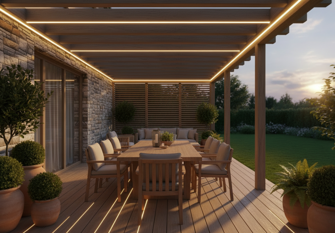 Dekoratívne a naládove osvetlenie altánku, vonkajšieho sedenia či terasy: