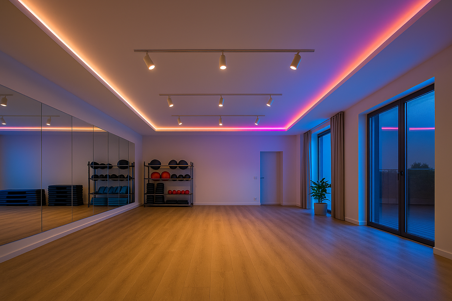 Športové a spoločenské miestnosti s väčšou plochou stropu, kde sa uplatní jednoduchá inštalácia v jednom kuse iba pripojením do zásuvky.