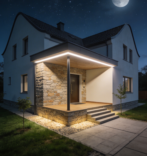 Exteriérové línie svetla na fasádach, podbitiach striech, pergolách, terasách a v altánkoch.