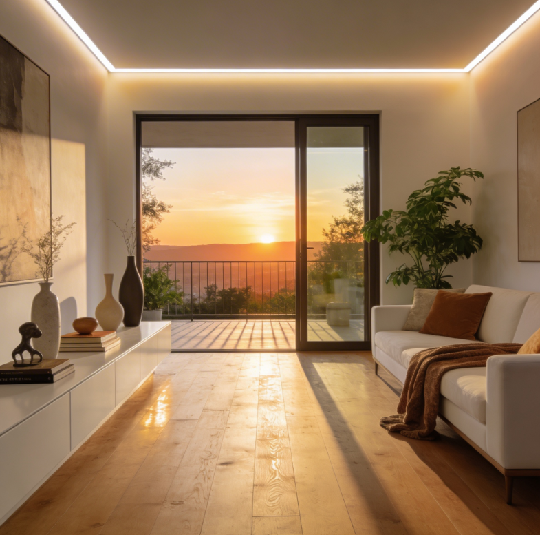 Línové osvetlenie podhľadov, stropných ríms a kútov.