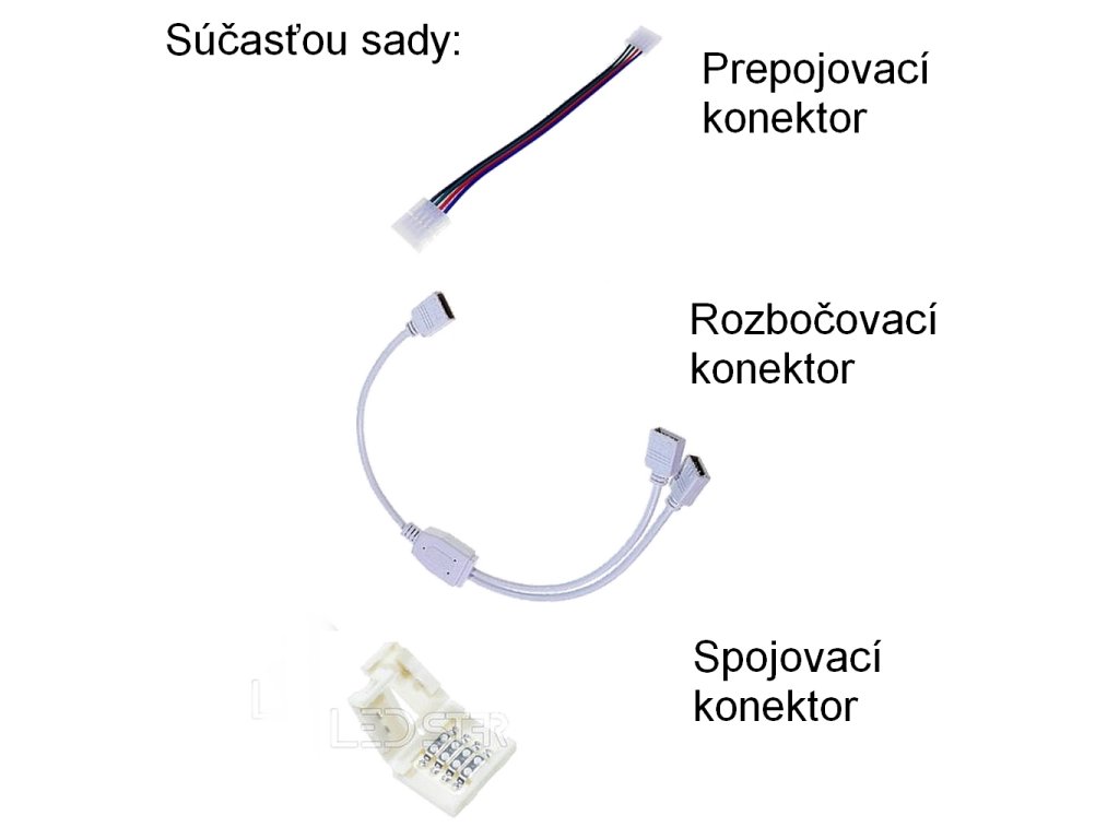 RGB spojovací konektor, 2 ks súčasťou sady, pre prípad potreby delenia a spájania pásikov.