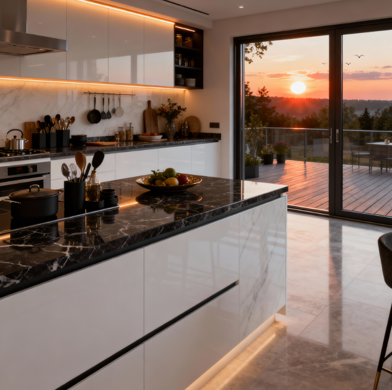 Spojenie pásikov na kratšiu vzdialenosť v kuchyni, obývačke, na schodoch, v skriniach a dekoráciách
