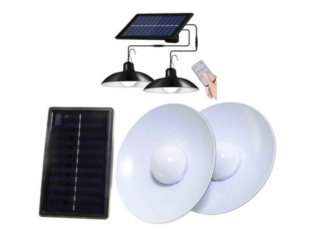 2 x Závesné stropné solárne LED svietidla, s oddeleným nabíjacím solárnym panelom