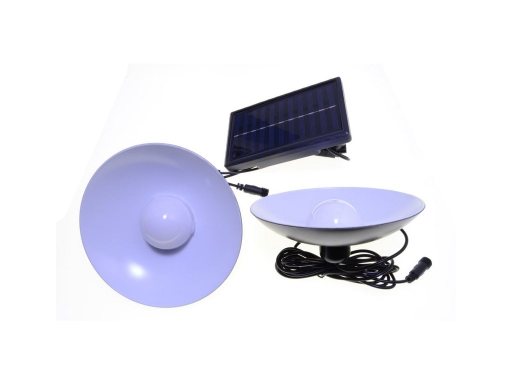 Nástenný solárny nabíjací panel s batériou a závesnou solárnou stropnou lampou. Solárny panel s otočným kĺbom pre jeho optimálne nasmerovanie smerom k slnku. Svietidlo je vybavené 3m dlhými pripojovacími káblami pre možnosť jeho umiestnenie napríklad aj vo vnútorných priestoroch, nezávislé od solárneho panelu. Solárne svietidlo s klasickým nadčasovým dizajnom. Svietidlo má ochranu proti proti vniknutiu vody pri umiestnení do vonkajších priestorov.