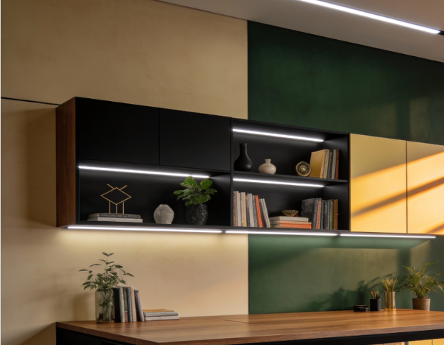 Osvetlenie políc, vitrín, regálov a nábytkových zostáv v obývačke, pracovni alebo predajni, kde je dôležité verné podanie farieb produktov.