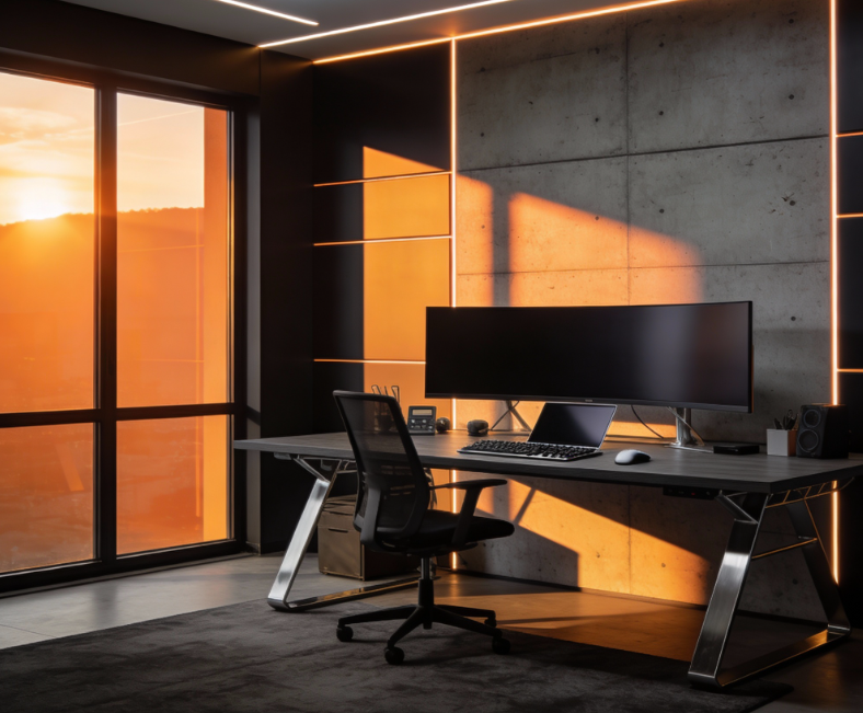 Podsvietenie nábytku, políc, vitrín, TV stien a knižníc v kombinácii s hliníkovými profilmi pre čistý dizajn bez viditeľných bodov.