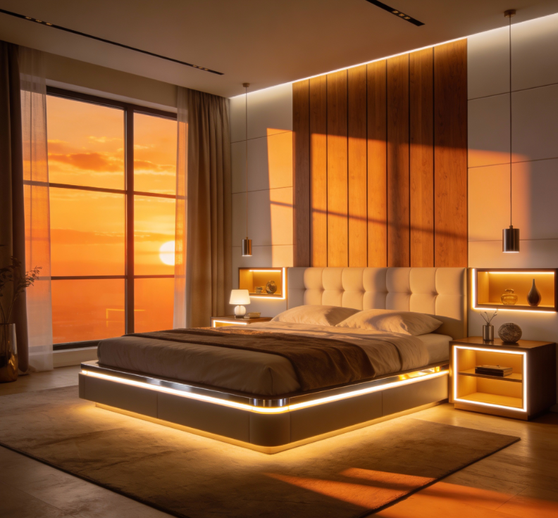 Ambientné osvetlenie wellness, relaxačných zón a domácich kín, kde COB pásik umožňuje jemné stmievateľné podsvietenie bez bodkového efektu.