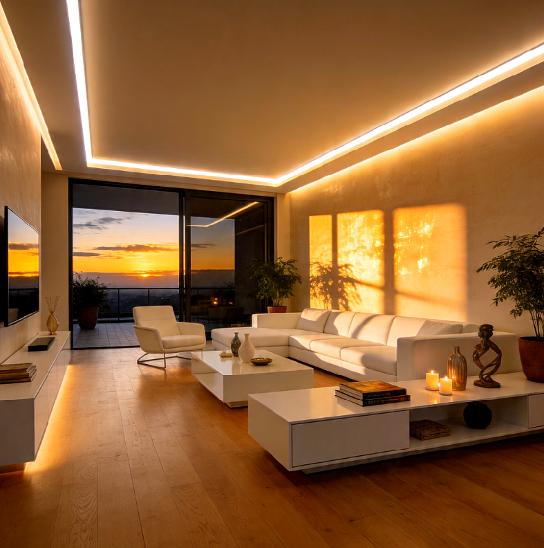 Teplá biela farba svetla 3000K vytvára príjemnú, útulnú atmosféru, ktorá je komfortná pre dlhodobý pobyt v priestore – od obývačiek, kuchýň a spální až po hotelové izby či reprezentatívne kancelárie. Napájanie 24V umožňuje realizovať dlhšie úseky s menším úbytkom napätia v porovnaní s 12V pásikmi, čo je výhodné pri dlhých líniách svetla v stropoch, rímsach, nábytku alebo koridoroch. V kombinácii s kvalitnými hliníkovými profilmi získate nielen špičkový vizuálny efekt, ale aj optimálne chladenie pre dlhú životnosť LED diód.