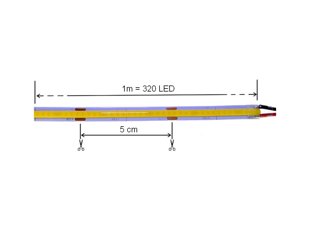 320LED/m, zaliate luminiscenčnou vrstvou aby sa dosiahla súvislá svetelná línia. Celý pásik je potom zaliaty ešte priehľadným silikónom.