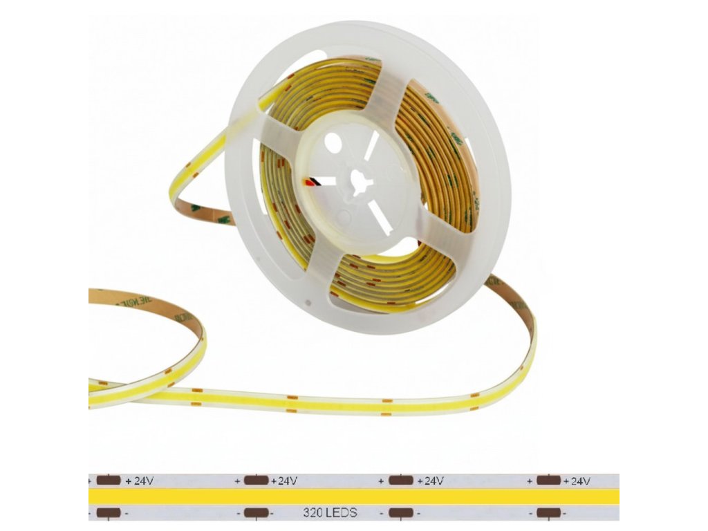 COB LED pásik 24V Premium 5m 4000K IP65 je kompaktné profesionálne riešenie pre menšie aj stredne veľké inštalácie, kde je žiadaná vysoká kvalita svetla, rovnomernosť a odolnosť voči vlhkosti. Zdrojom svetla je COB technológia so 320 diódami na meter, ktorá vytvára spojitú svetelnú plochu a eliminuje typické bodové svietenie klasických SMD pásikov.