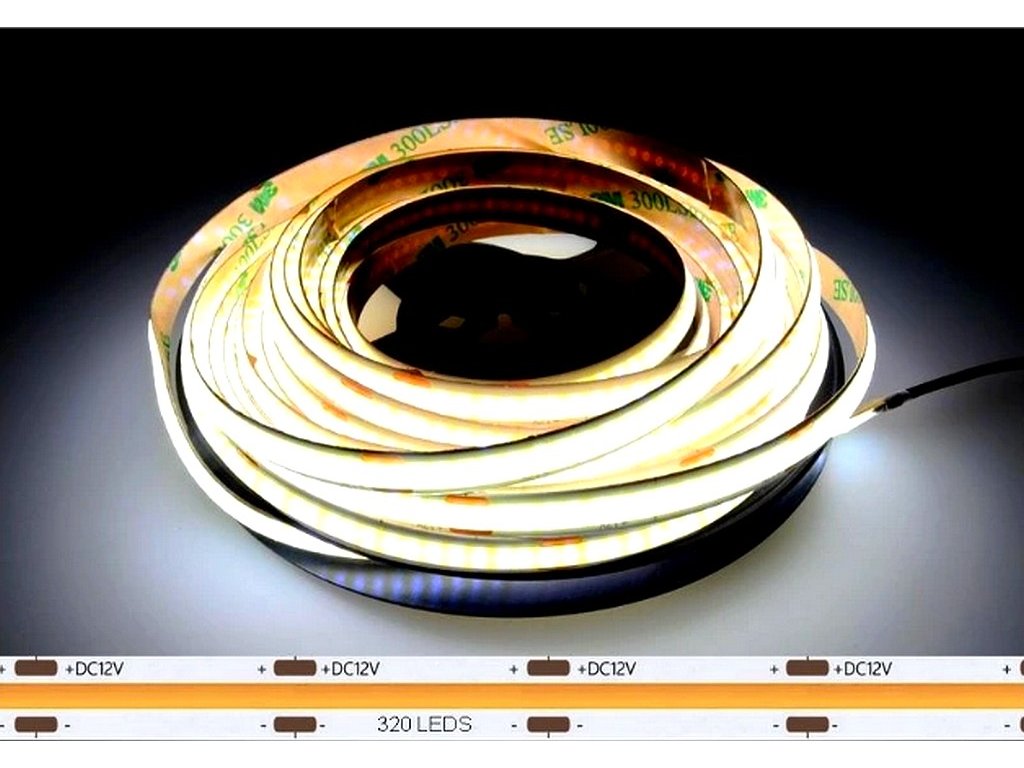 Hustota 320 COB LED/m zabezpečuje jednoliatu svetelnú plochu, čo je ideálne pri montáži do hliníkových profilov, podhľadov a nábytkových drážok, kde nechcete vidieť jednotlivé body. Pásik má príkon približne 10W/m, svetelný tok okolo 800 lm/m, uhol svietenia asi 110° a index podania farieb CRI>80, takže zvládne aj praktické osvetlenie menších plôch.