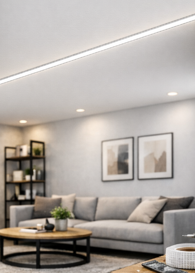 Zapustené stropné a nástenné LED línie v sadrokartónových podhľadoch, chodbách, obývačkách, kuchyniach či spálňach.