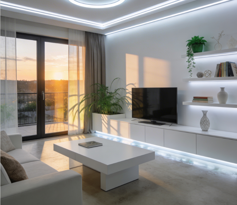 Dekoratívne a doplnkové osvetlenie v interiéri: rímsy, niky, štrbiny.