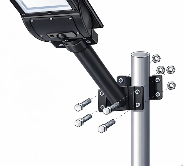 Uchytenie LED pouličných lámp na oceľové, hliníkové alebo pozinkované stĺpy bez vŕtania do konštrukcie.