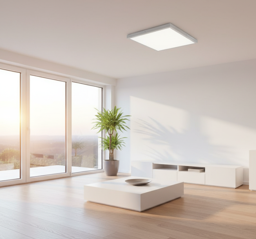 Moderné plošné osvetlenie v domácnostiach – kuchyne, predsiene, pracovné kúty – kde je požadované neutrálne denné svetlo a tenký prisadený panel