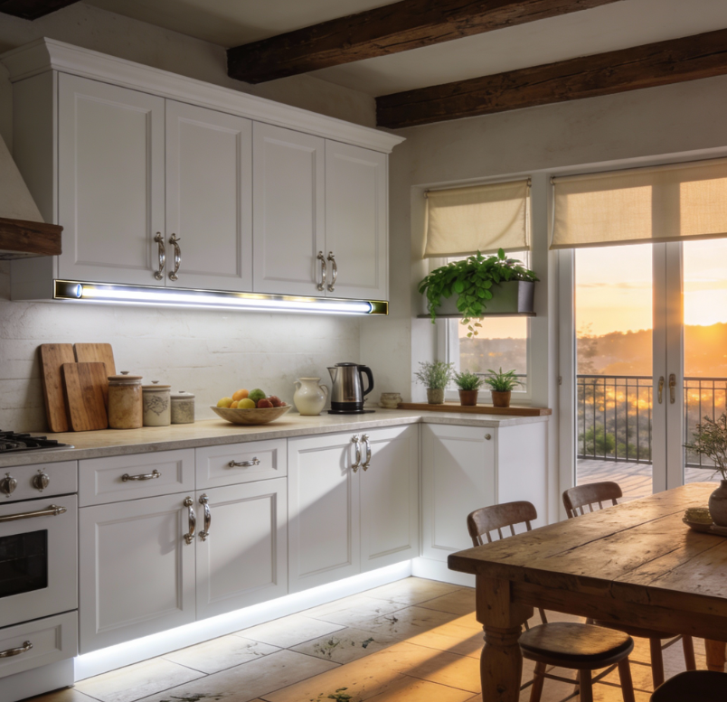 Osvetlenie nábytku, políc, vitrín, šatníkov a vnútorných soklov s dôrazom na estetickú, súvislú líniu svetla.