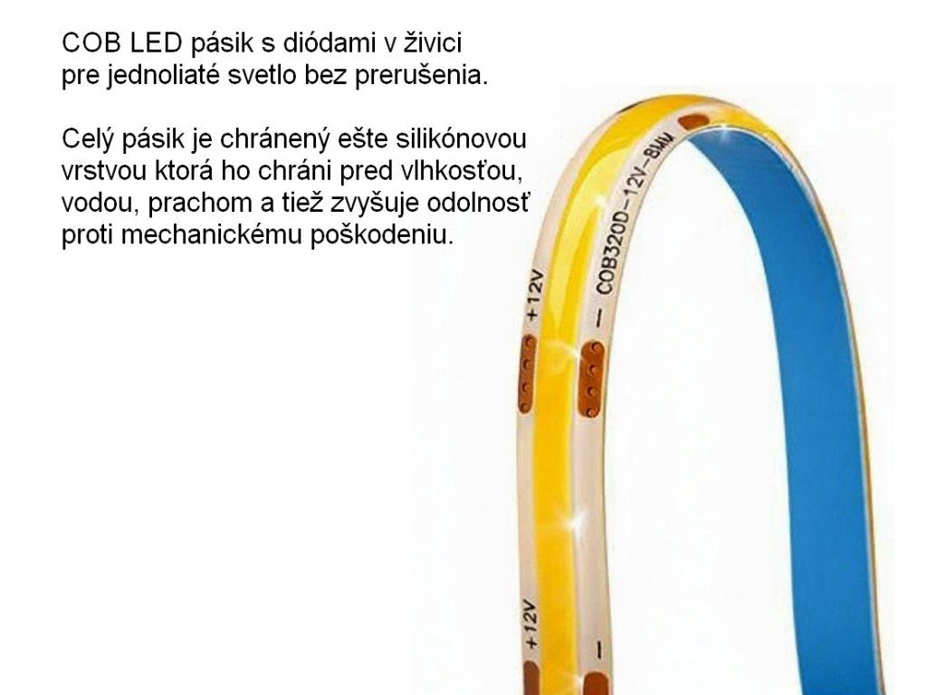 COB pásik s 320 LED/m vytvára hladkú svetelnú líniu, bez viditeľných diód, čo pôsobí profesionálne aj pri pohľade zblízka.