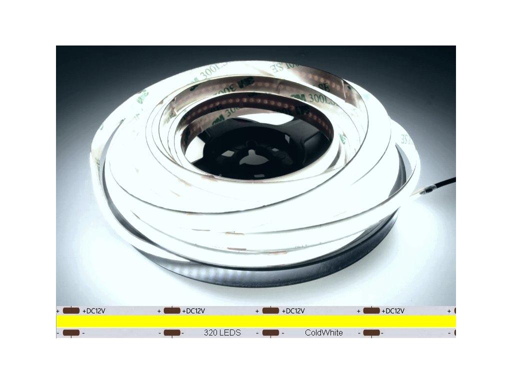 MasterLED COB LED pásik vode odolný 5m 12V 6500K Studená biela 10W/m 320LED/m IP65 je spoľahlivé riešenie pre jasné technické osvetlenie v interiéri aj v chránenom exteriéri.