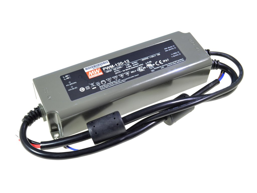 Mean Well Napájací spínaný vode odolný LED zdroj PWM-120-12 IP67