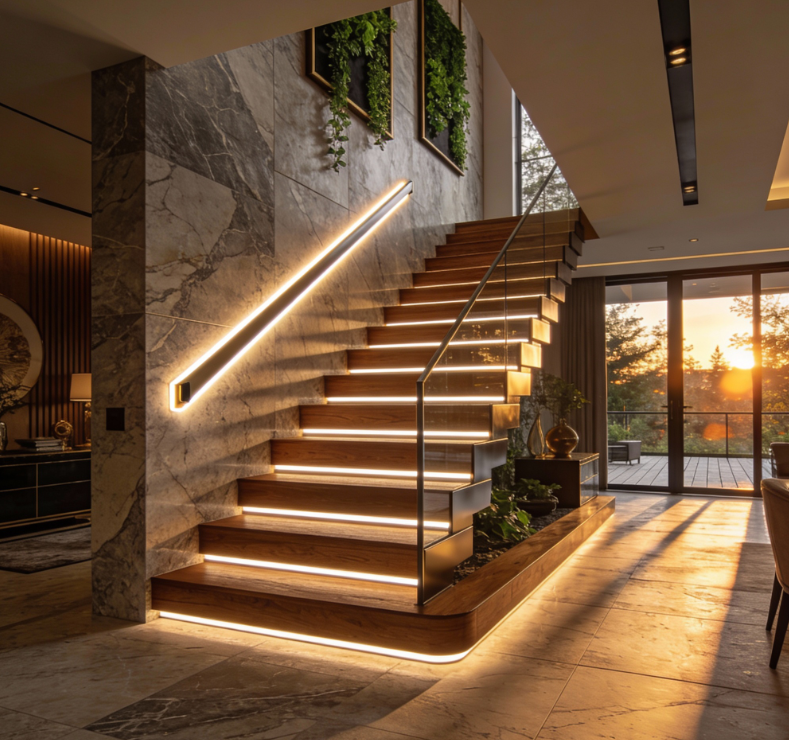 Rôznorodosť využitia na dizajnové osvetlenie v domácich priestoroch alebo aj v komerčných priestoroch. Nepotrebujete používať vypínač osvetlenia na schodisku. Svetlo sa zapína iba vtedy ak sa niekto nachádza na schodoch. Pohyblivý efekt inteligentného rozsvecovania schodov dostane ozaj každého.