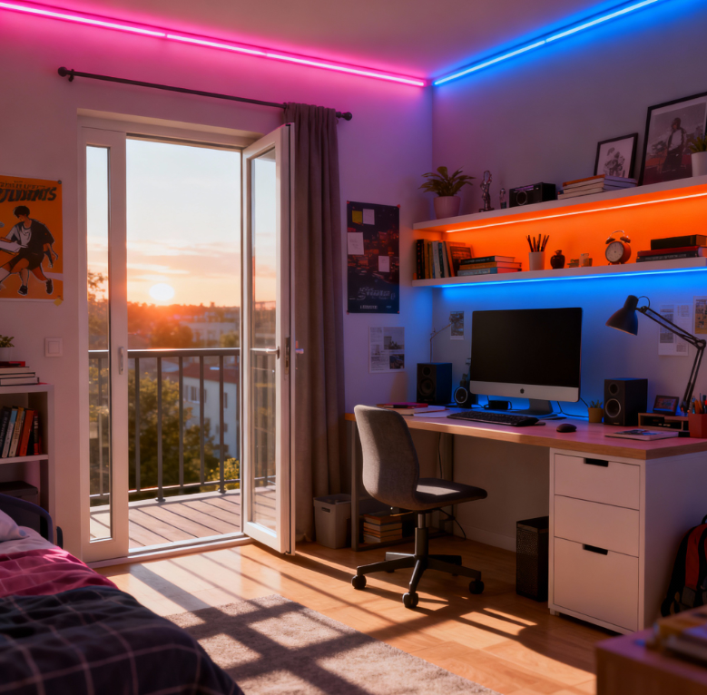Premenlivé LED dekoračné osvetlenie obývačky, spálne, štúdia alebo obchodného priestoru cez mobil a hlas.