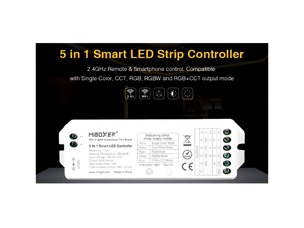 Multi univerzálny ovládač pre všetky typy pásikov : RGB, RGBW, CCT Duálne, RGB+CCT, Mono jednofarebné LED pásiky alebo svetlá, určený pre použitie s ovládačmi s označením MiLight, MiBoxer alebo MLT.