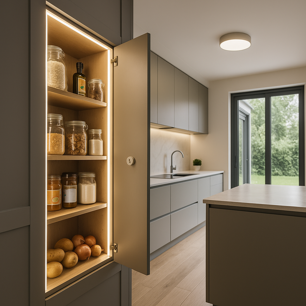 Automatické osvetlenie v skrinkách či kuchynských častiach – senzor aktivuje svetlo pri otvorení dvierok bez ďalších káblov či tlačidiel.