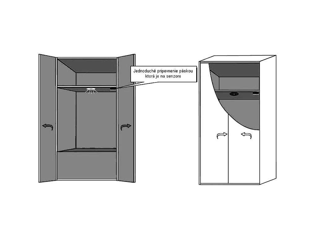 Tento kompaktný pohybový (PIR) senzor DS1 je navrhnutý špeciálne pre automatické ovládanie osvetlenia LED pásikov. Praktické pre chodbové, skrinkové či nábytkové osvetlenie, kde senzor sníma prítomnosť dvierok a po ich otvorení rozsvieti osvetlenie.