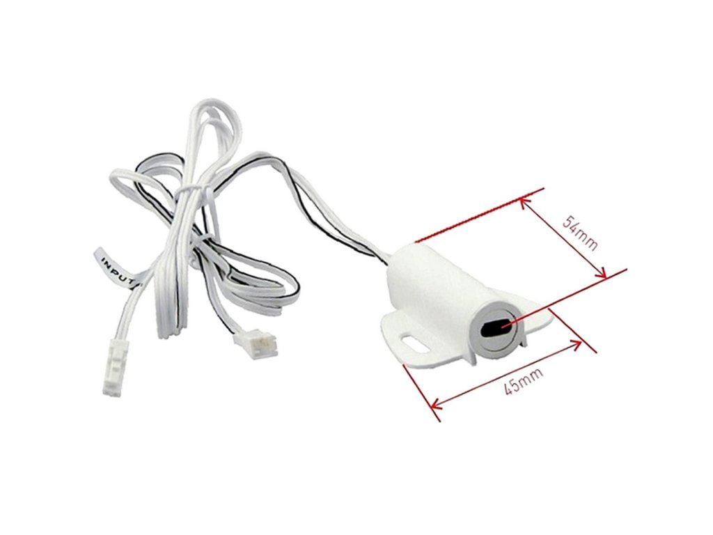 Senzor má malé plastové telo v bielej farbe a je určený na povrchovú montáž, napríklad do spodnej časti police, skrinky alebo do profilu LED pásika. Detekčná vzdialenosť sa pohybuje v jednotkách až desiatkach centimetrov v závislosti od typu dverového/pohybového prevedenia, čo je ideálne pre lokálne ovládanie – rozsvietenie po otvorení dvierok, vysunutí zásuvky alebo pohybe ruky v blízkosti. Vďaka kompaktným rozmerom a napájaniu DC je vhodný aj do užších hliníkových profilov a menších skrinkových zostáv.