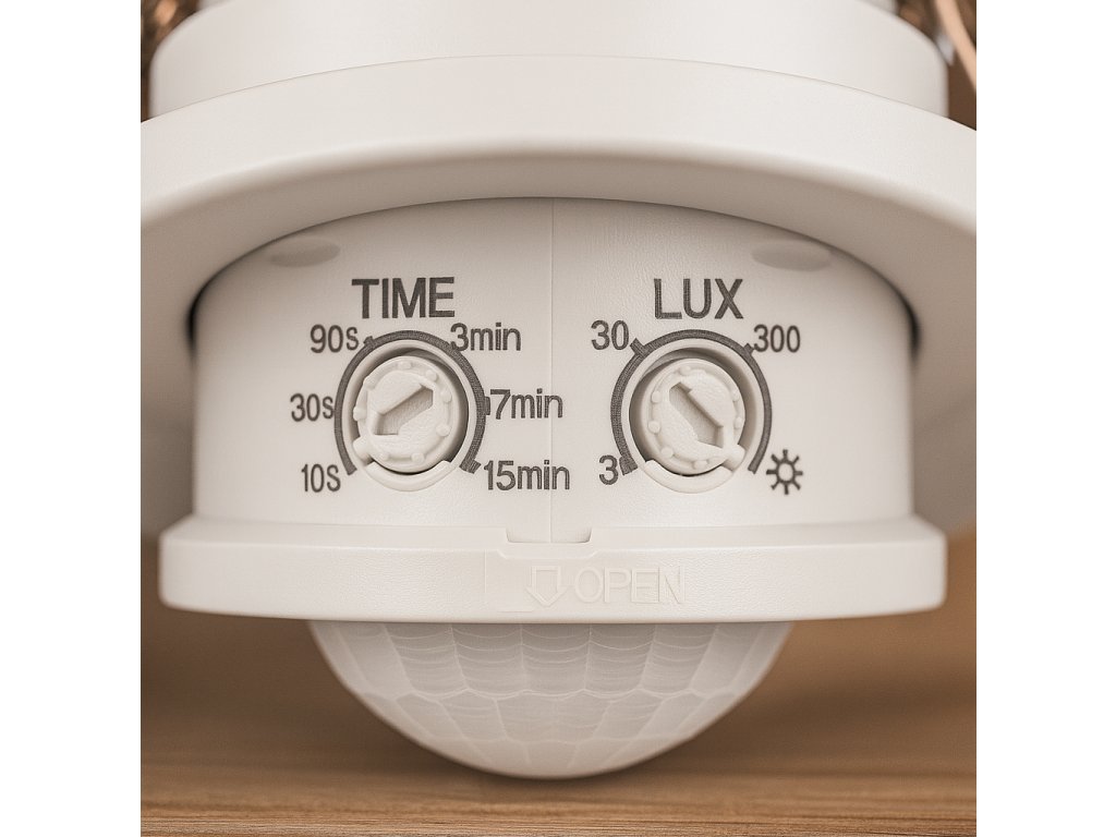 Senzor je určený na zapustenie do stropných konštrukcií a pracuje pri napájaní 230 V. Disponuje nastaviteľnými parametrami ako citlivosť, čas zopnutia (v rozsahu od niekoľkých sekúnd až po minúty) a úroveň okolitého osvetlenia (LUX), pri ktorej má reagovať.